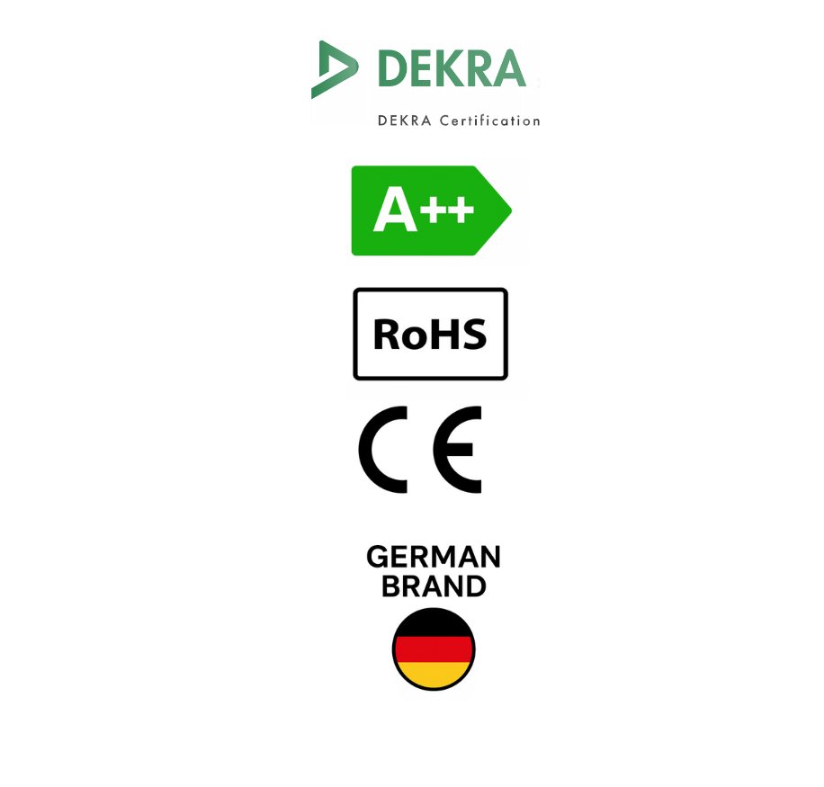 Unsere Klimaanlagen sind CE-zertifiziert, RoHS-konform, DEKRA-geprüft und energieeffizient.